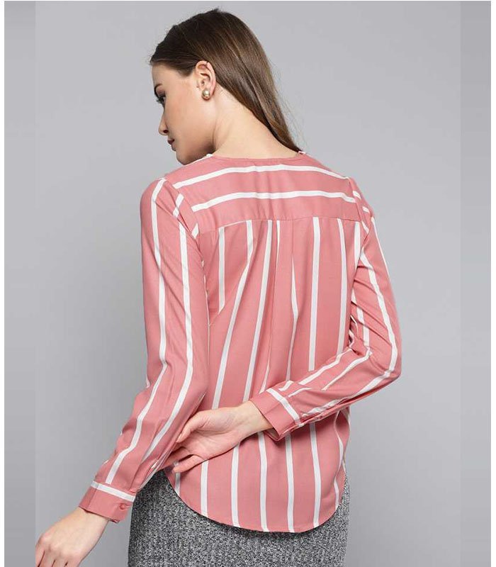 Casual Regular Sleeve Striped Women Pink Top