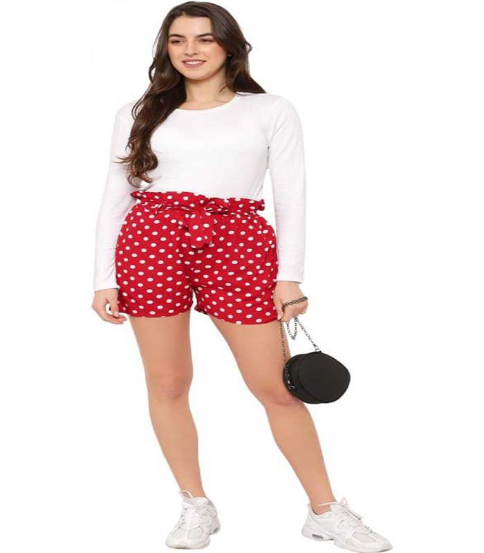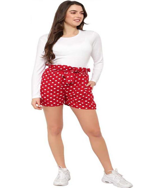 Hopx Polka Print Women Red Night Shorts