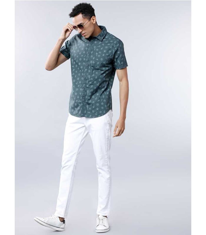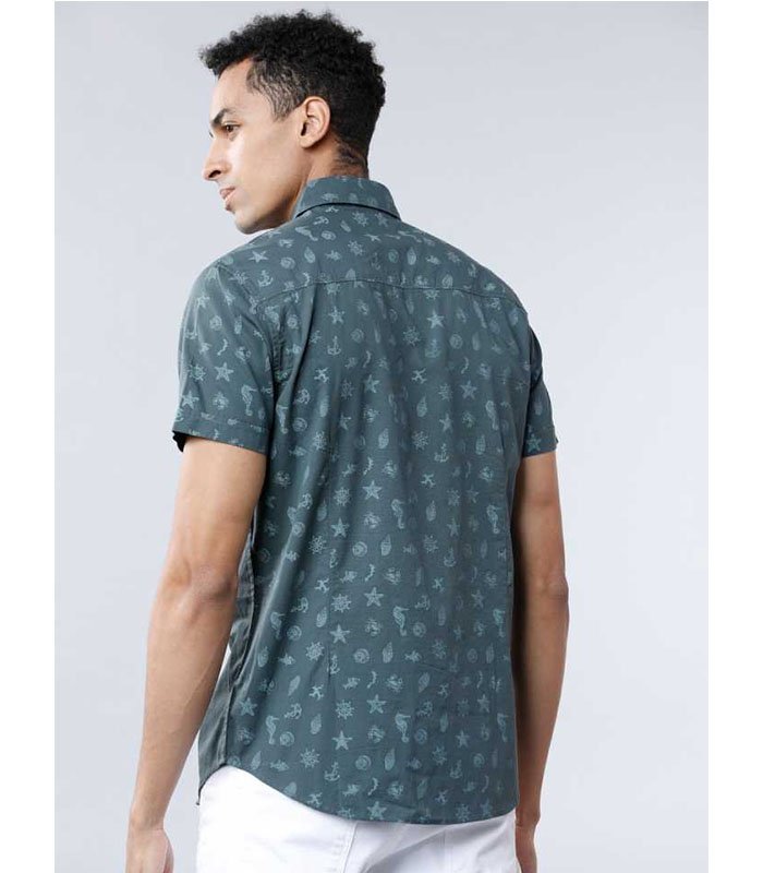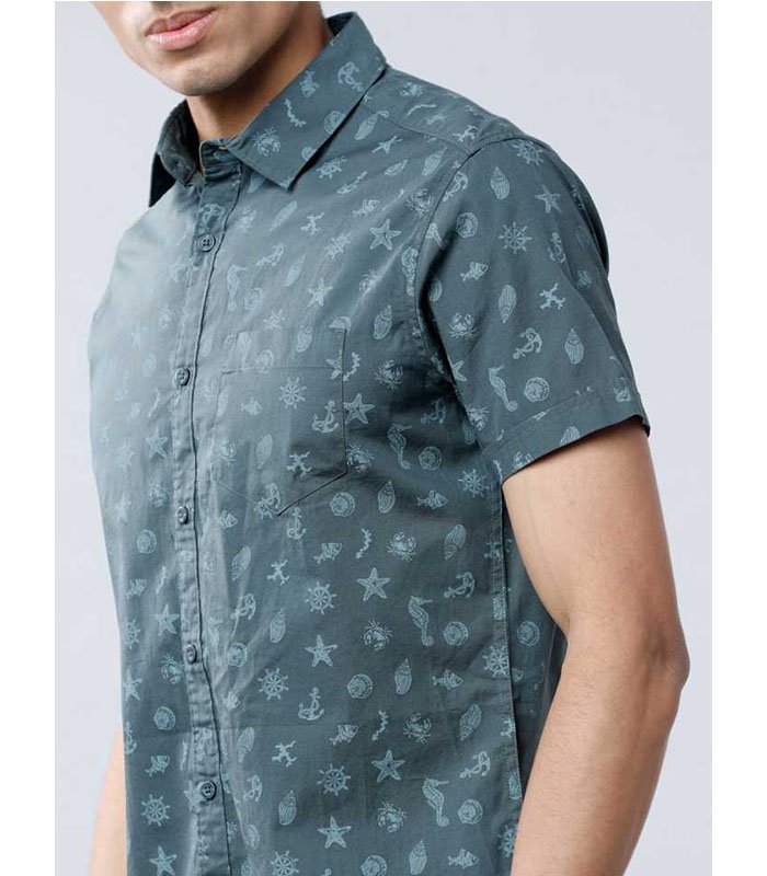 Men Slim Fit Printed Cut Away Collar Casual Shirt